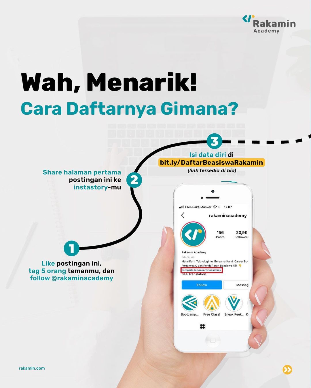 Buat kamu yang sedang aktif mencari kerja, membangun karir, atau ingin pindah karir. Rakamin bantu dengan Program Beasiswa, FREE tidak ada tambahan biaya!✨